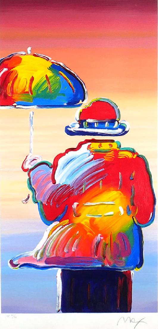 1 view max limited editions. This colorful piece depicts a man walking holding an umbrella. East dane designer men's fashion. Peter max umbrella man at sunset newly custom framed art print 15 x 17. Peter max umbrella man, watercolor & ink.
